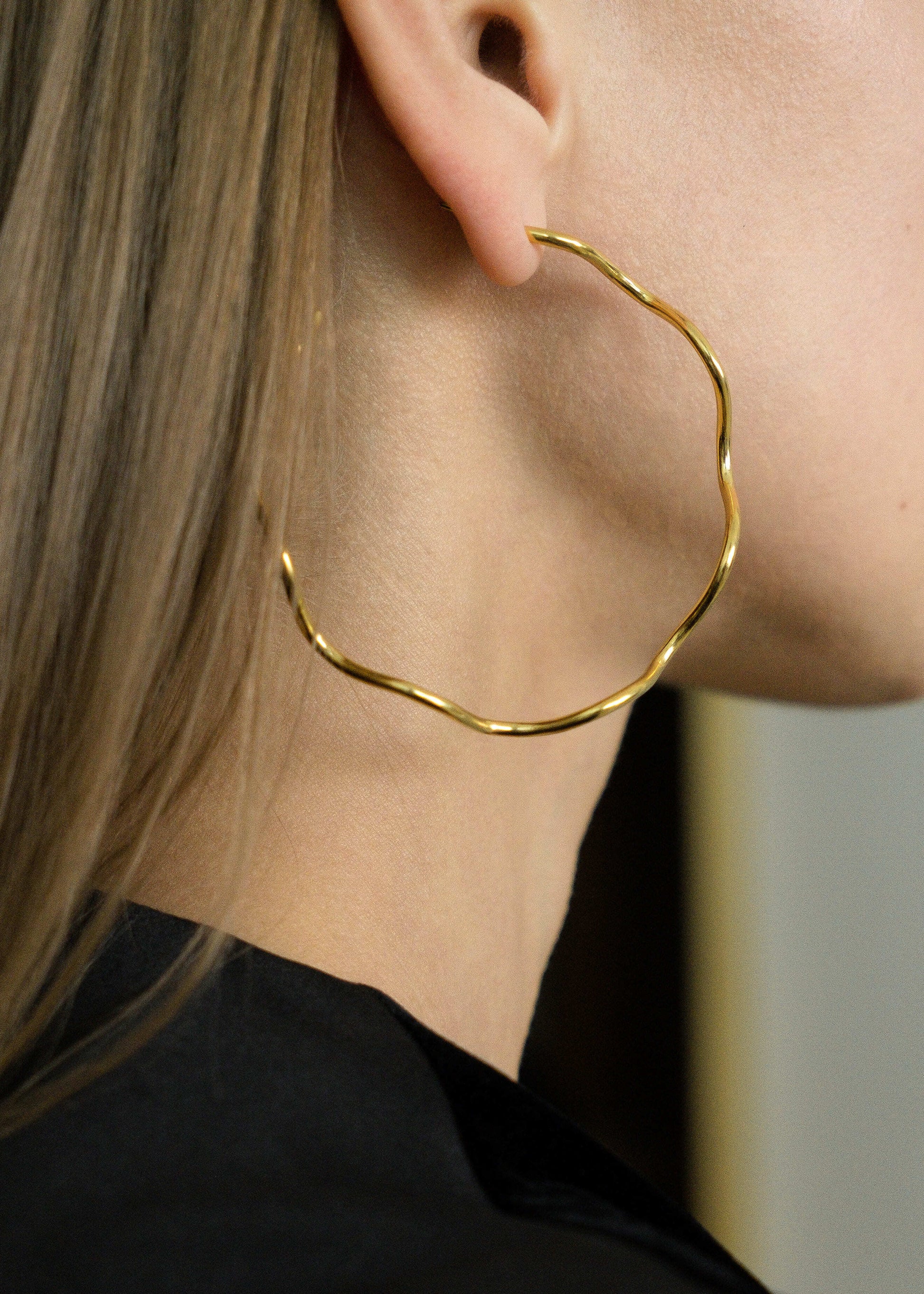 Elevate your style with these trendy hoop earrings featuring a unique wavy design. The fluid, undulating shape adds a modern twist to the classic hoop, making them perfect for everyday wear or special occasions. Lightweight and stylish, they bring movement and elegance to any look.